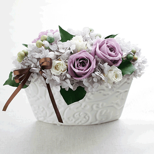 プリザーブドフラワーでドーム状にアレンジするラウンドスタイルが基本形となります。ご用途やカラー・スタイル等をヒヤリングし、イメージに合わせたオーダーアレンジを承っております。