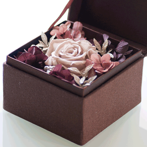 当店独自にデザインしたオリジナルのボックスに、プリザーブドフラワーをアレンジいたします。プレゼントやぬいぐるみを同梱するなど、様々なスタイルに対応が可能です。